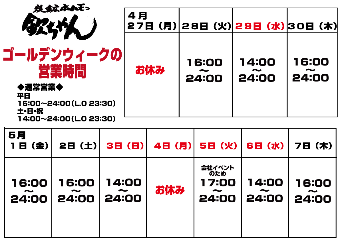 想い出はあとにはこちら欽ちゃん本店ゴールデンウィークの営業時間