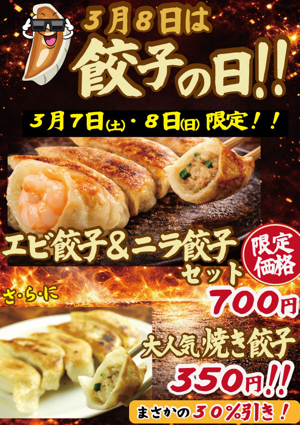 いつも人気の餃子がかなりお得に食べれちゃうチャンス!!!