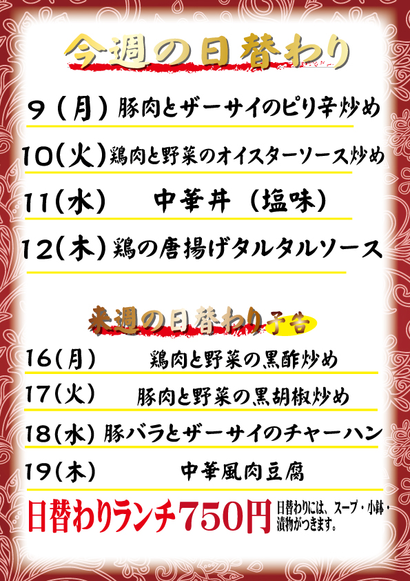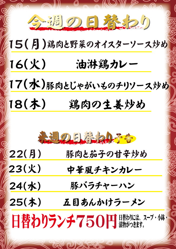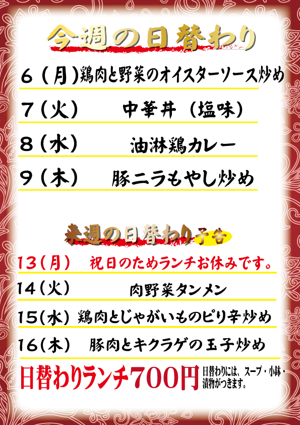【ランチ営業】(ランチ金・土・日お休み)(月~木)11:30~15:00