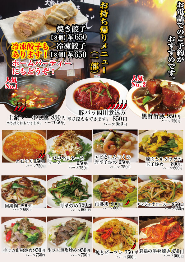 お持ち帰りメニュー(通常メニューもお持ち帰りできます)