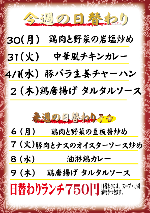 【ランチ営業】(ランチ金・土・日お休み)(月~木)11:30~15:00