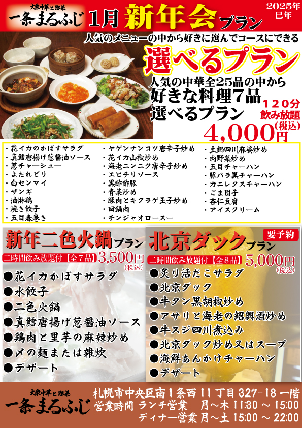 一条まるふじ2025年1月宴会メニュー(ご予約承り中!)