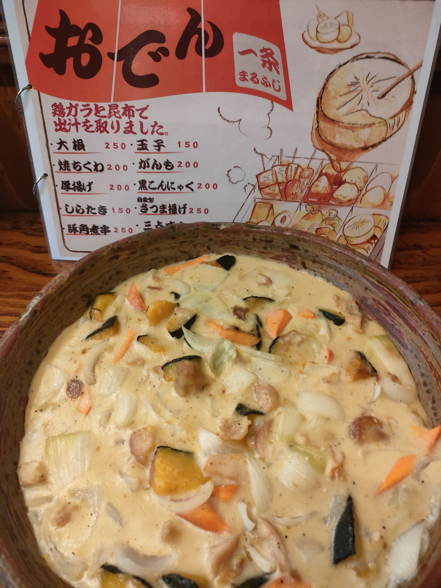 今日のお惣菜です! 2025/10/08 16:37 大根染みてますー。おでん。 蒸し鶏ともやしナムル チキンクリームシチュー 干し海老と豆腐の煮込み 14名様が6名様に減ってしまいましたので、お席た〜っぷり空いてます! ご来店お待ちしております!! 八戸の甥っ子も前の記事 助かりました〜次の記事