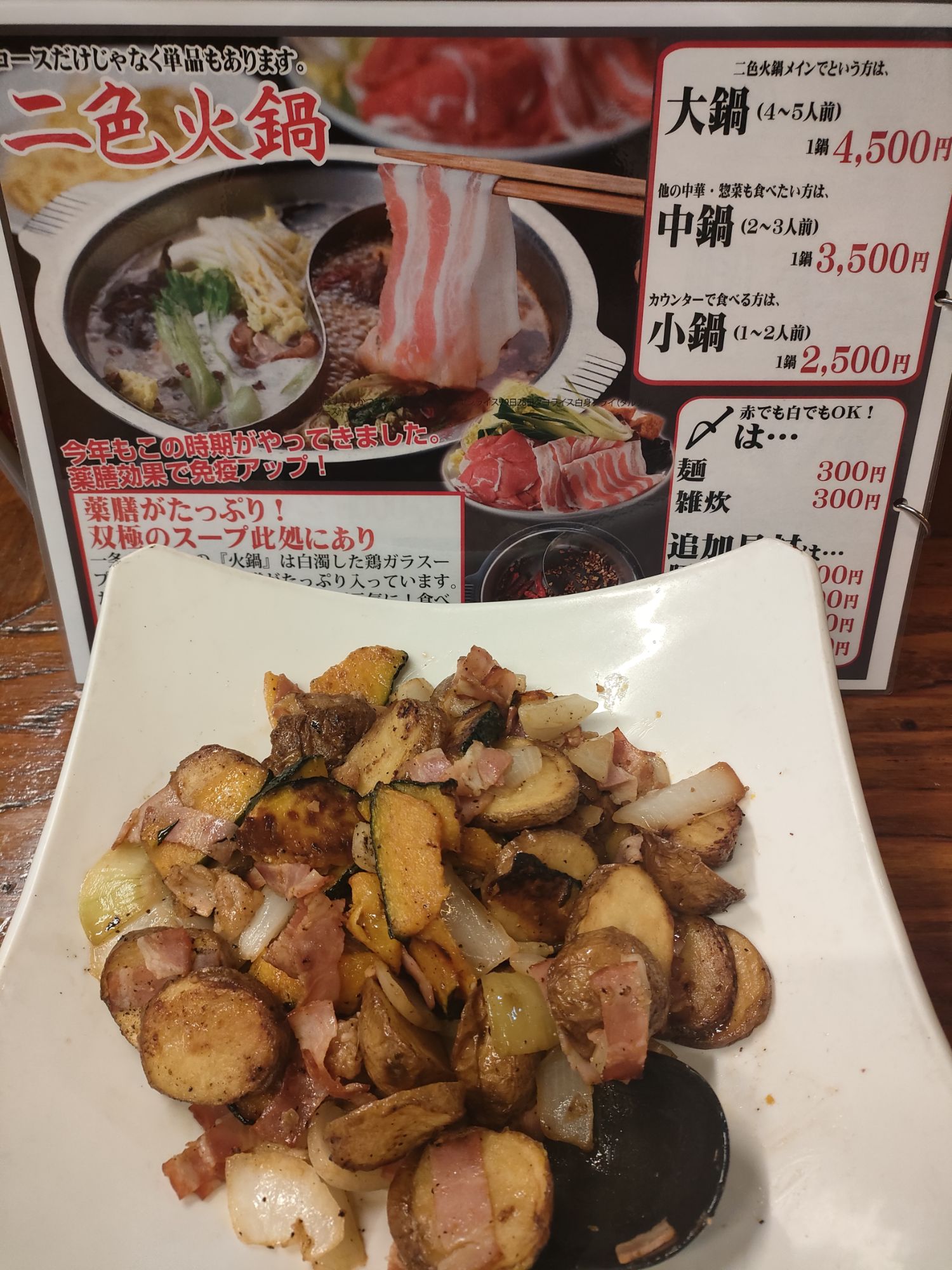 本日のお惣菜です! 2025/10/09 16:56 チキンじゃがバター炒め ポトフ 美唄やきとり炒め 好評の二色火鍋!(ななえちゃんは野菜もお肉も全部入れ、笑) 宴会プランにも 少し予約増えてました〜!! ご来店お待ちしております!! 助かりました〜前の記事 落ち着く部屋で次の記事