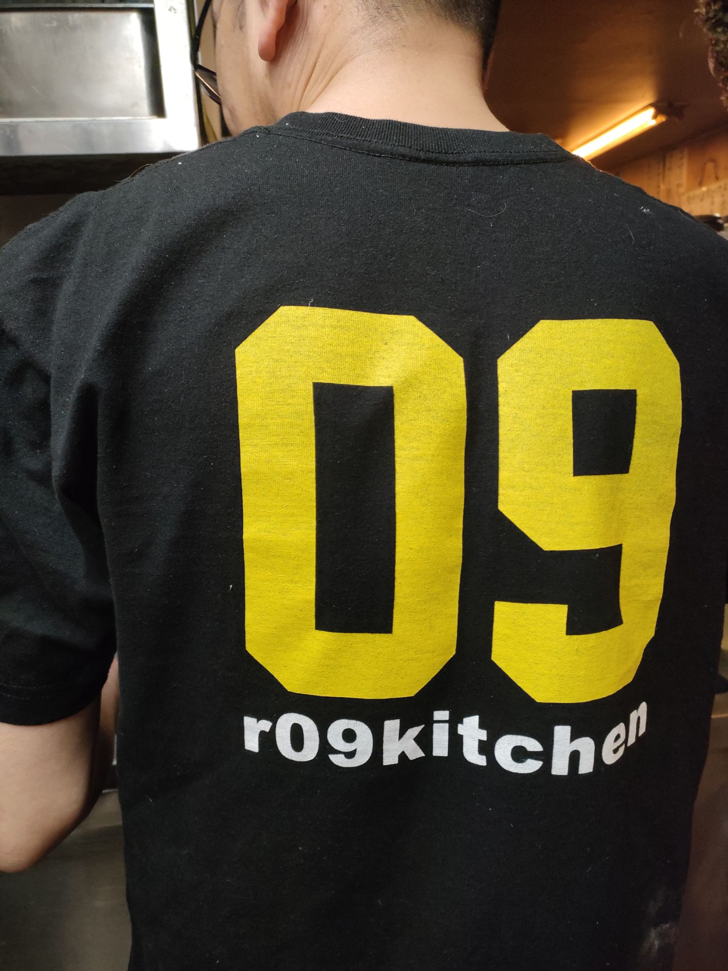 うちの店長(チーフ)、姪っ子恋句が次男を産んだのでそのお祝いに、って昔恋句(09)が作ったTシャツを来てくれてました!ありがとね〜。(ただコックコートがクリーニングから戻って来てなかっただけかと思いますが…笑)