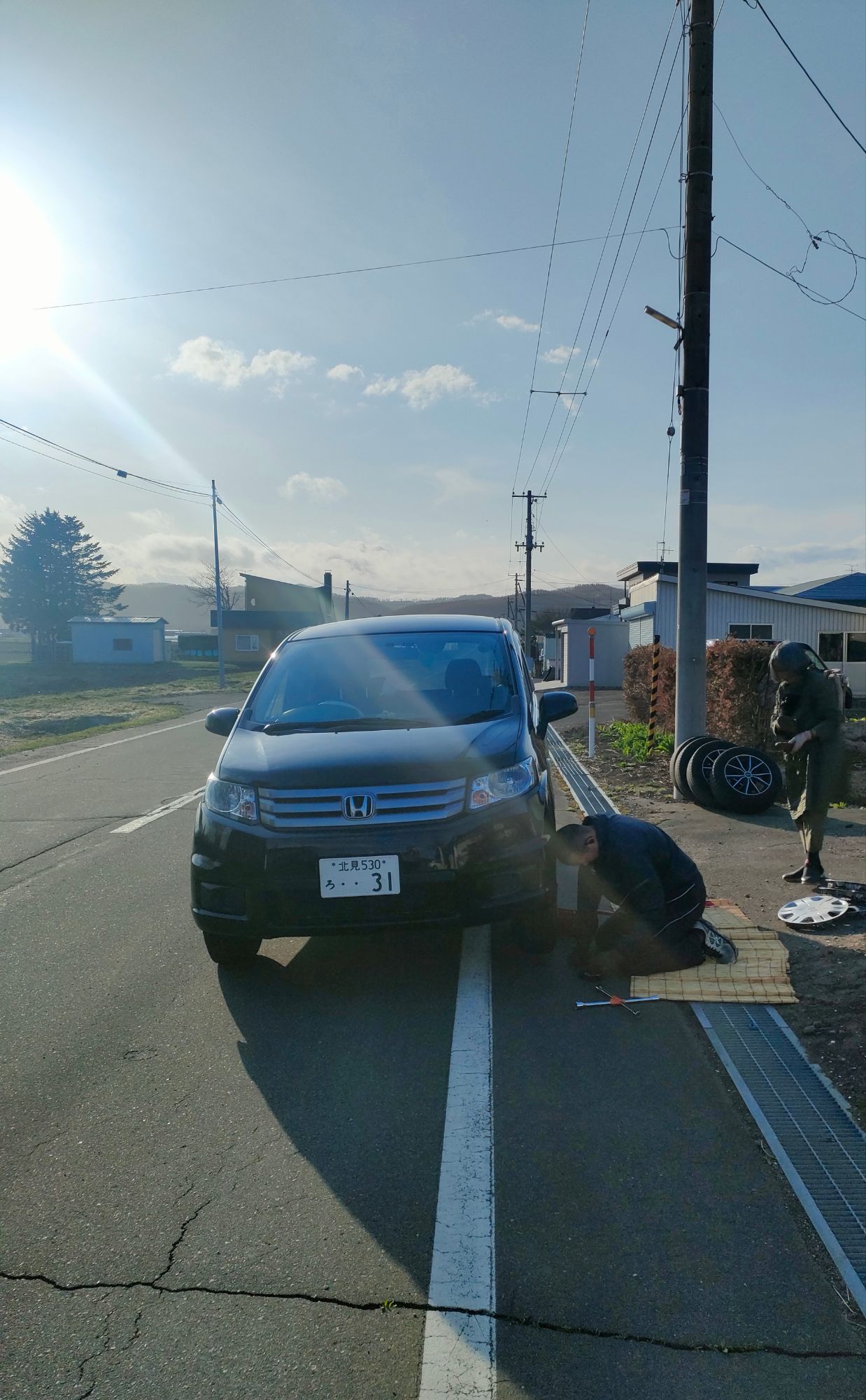 実家に着いて今度は兄が母親と私の車のタイヤ交換をしてくれた。ありがとう〜。(田舎なので平坦なところは道路だけ、すんません)