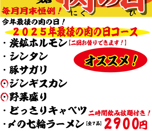 今年最後の肉の日1日目は26時まで迄営業