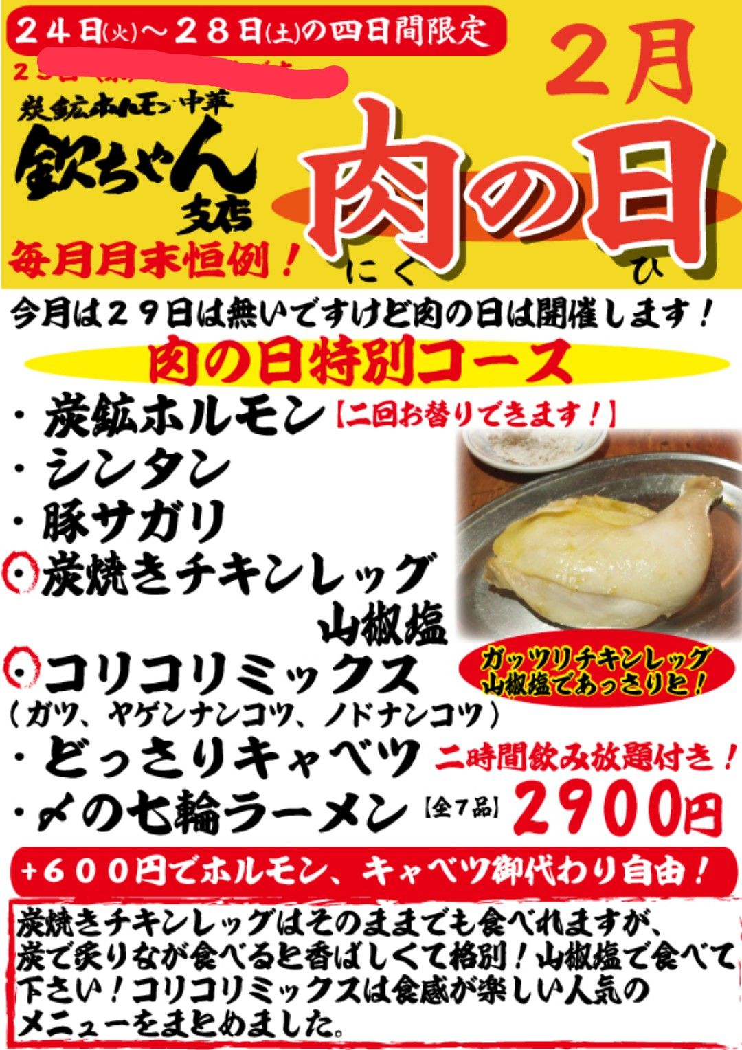 明日は休みというかたは思いきって食べ放題にしませんか?本日26時までの営業です。皆様の御予約御来店お待ちしております
