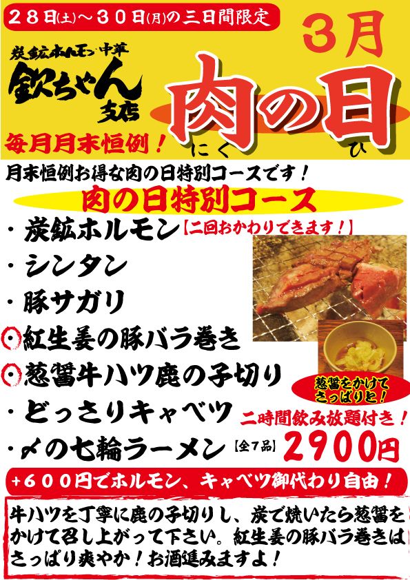 肉の日だけではない、猿払ホタテフェア! 2026.03.30 皆さんこんにちは、 最近、店長って中華もできるんだねと言われる白木です。 はい、出来ます、したの店でバイトもしてました。 さてさて、肉の日なのですが 、むしろこっちの方が食いつけます! 月曜から飲みましょう! 肉の日開催してます前の記事