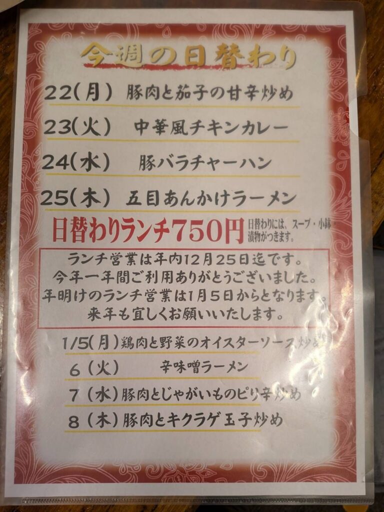 クリスマスらしい!?半身や油淋鶏のメニューもありますよー