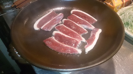 その脂がのった鴨肉を鍋はだでちょっと焼いてから葱と割下を注いでグツグツいわせて食べるんです!