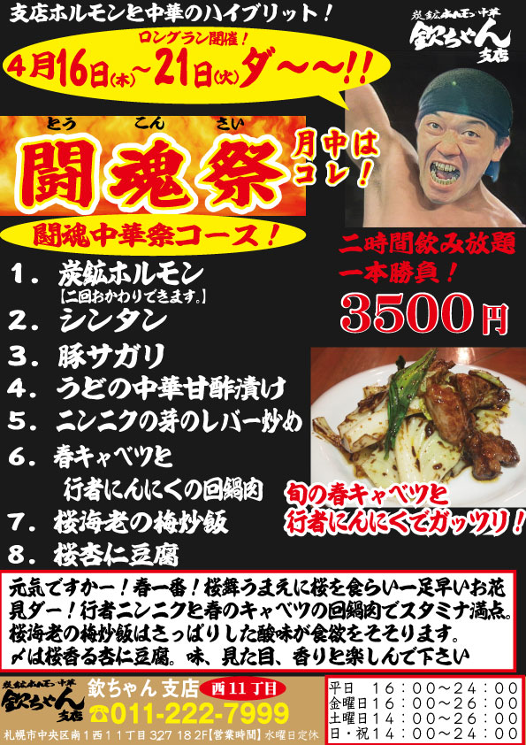 【土曜日】15:00~23:00