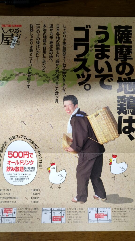 そう、何度も「イエペ(イエローページ)」を見ていて、毎回その店が出て来てたけど「焼き鳥=串に刺す」しか頭になく、