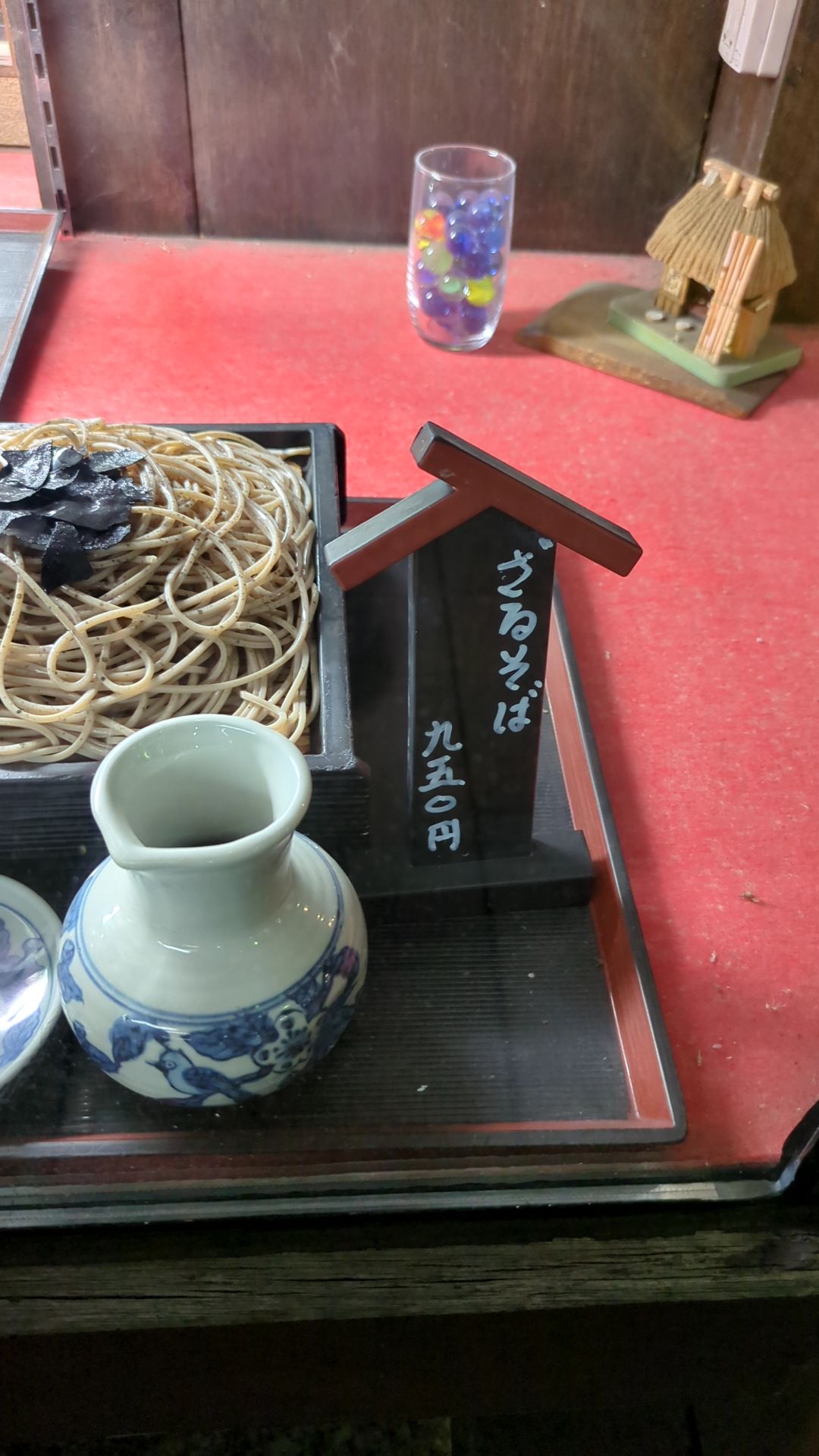 「ざるそば 九五〇円」って!! しかも、グラスに入ってりビー玉なんか”いっく”に盗まれるぞ!!(マジで・笑)