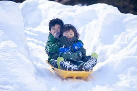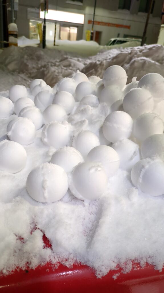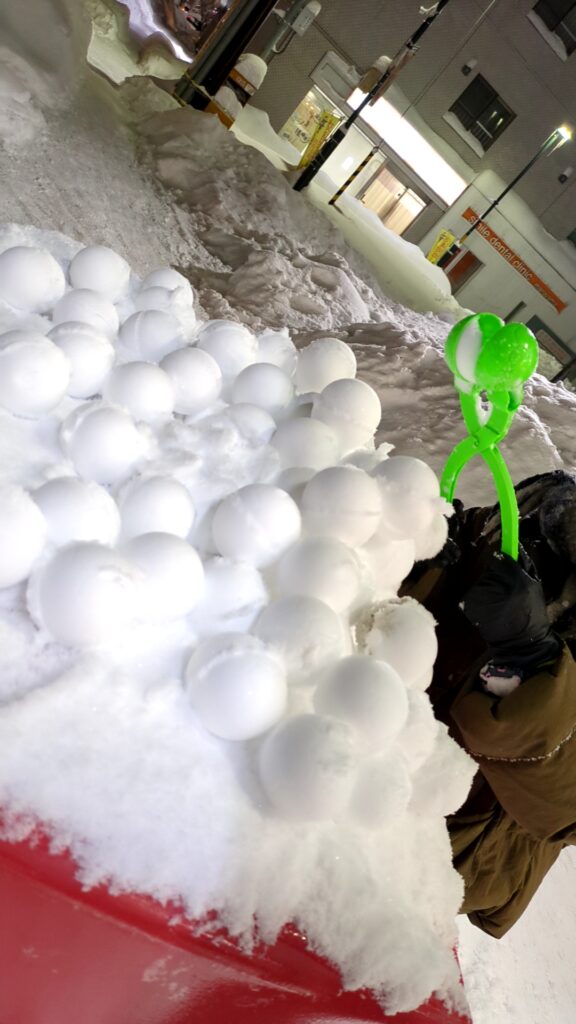 子供が「雪玉製造機」でせっせと雪玉を・・・・・。