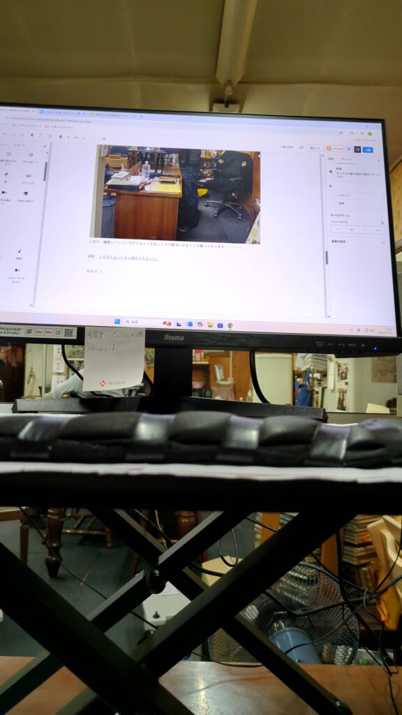 どうしても、PCの画が少し右、キーボードが少し左、それに伴いマウスの位置も微妙なアンバランスで体の左側に負担が掛かるんですね。(どうしてだろう?)