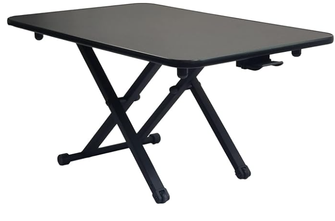 正式名は「スタンディングデスク 」ガス圧式無段階高さ調整卓上 折りたたみデスク リフティングテーブル 持ち運び 座位・立位両用 上下昇降式ワークデスク幅78.5×52cm 高さ調整範囲:5.5~41cmローテブルです。