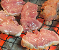 シンタンは、炭鉱ホルモンと一緒で食べ頃まで、表を焼いて、裏を焼きを繰り返し、焼き目が付いたら食べ頃です。