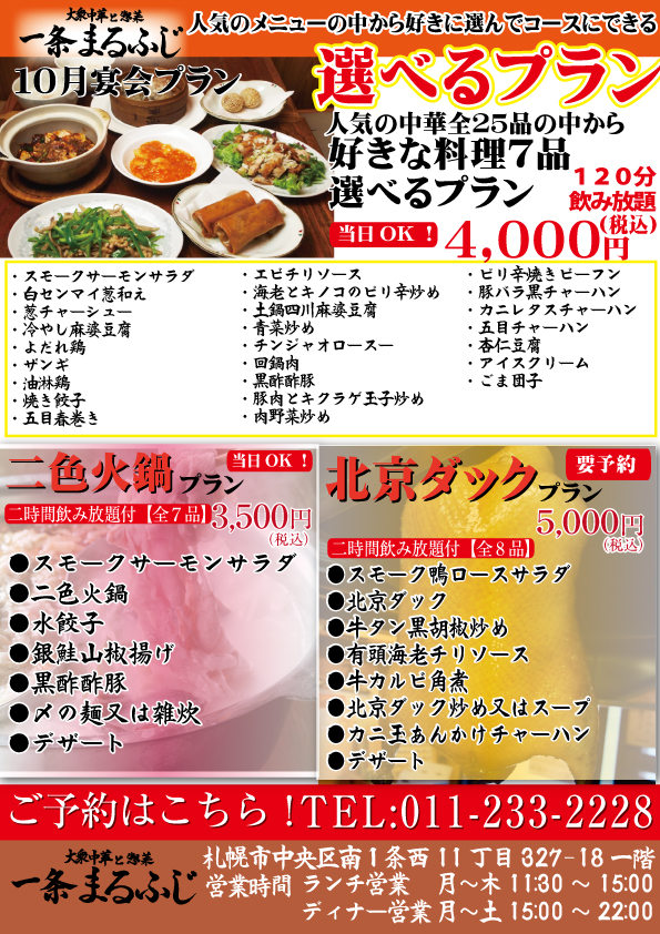一条まるふじ10月宴会メニュー(ご予約承り中!)