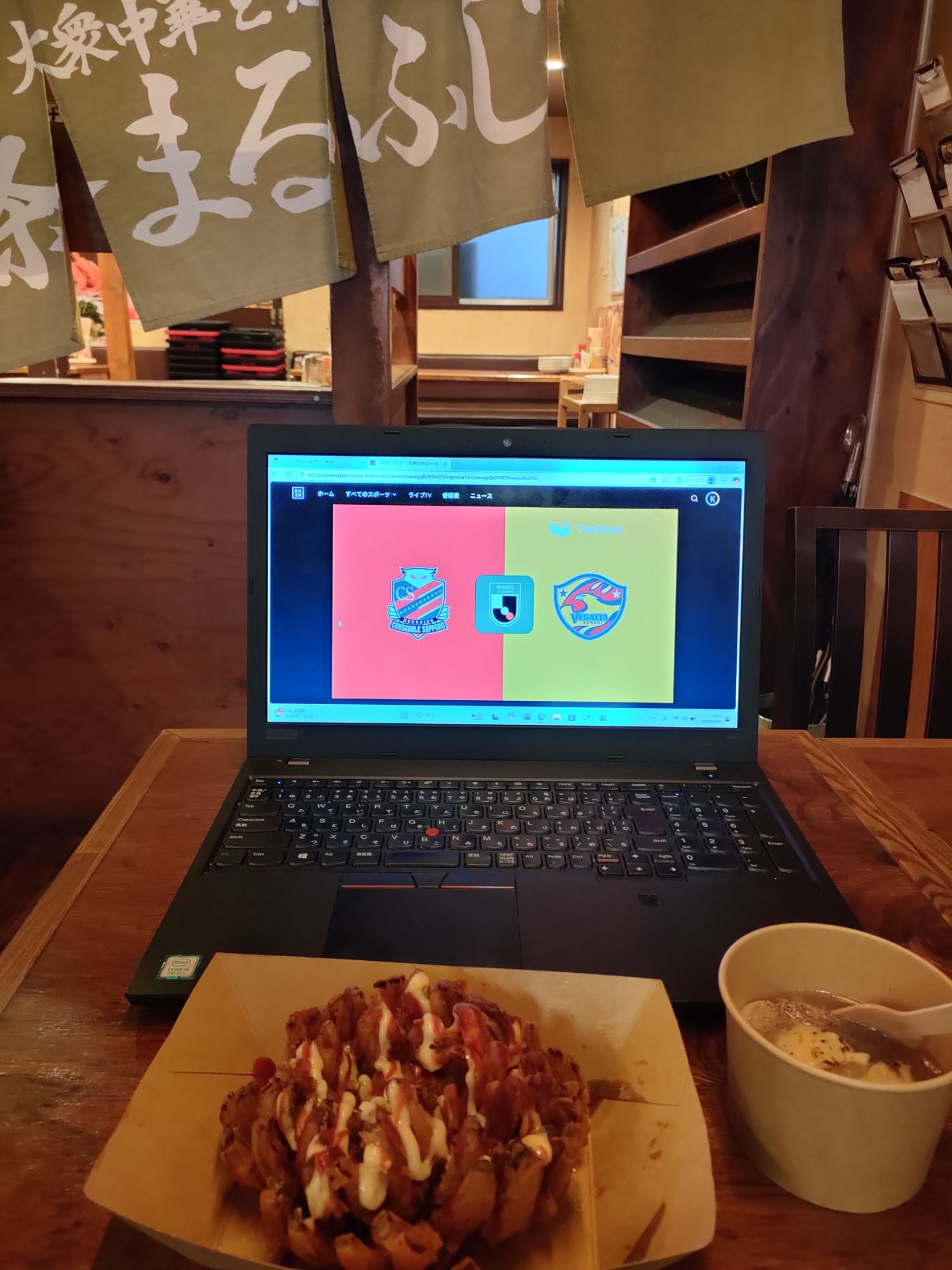 友達が作った新鮮な玉ねぎまるごとブロッサムと玉ねぎスープを食べながらコンサドーレ観戦!!(昨日深井くんの今季での引退発表と今日は小野伸二さんのお誕生日、絶対勝ってよ〜)