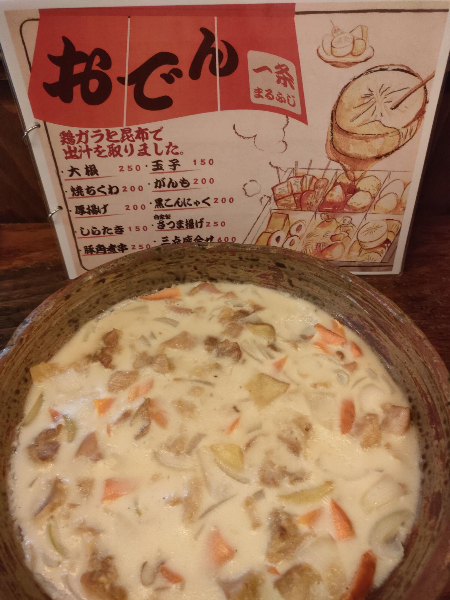本日のお惣菜と 2025/10/15 16:48 おでん マカロニサラダ チキンクリームシチュー マーボ茄子 まるふじご近所のクレメントさん。 マスターの生け花。 美味しい珈琲とマスターも出展する生け花美術展のご案内(笑) 本日もご来店お待ちしておりま〜す!! こちらは前の記事