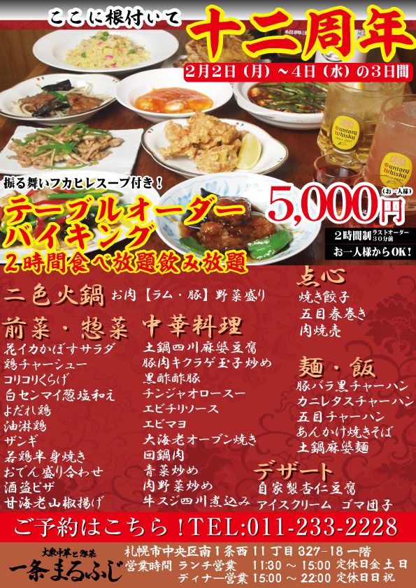ディナーは年に一度の食べ飲み放題です。