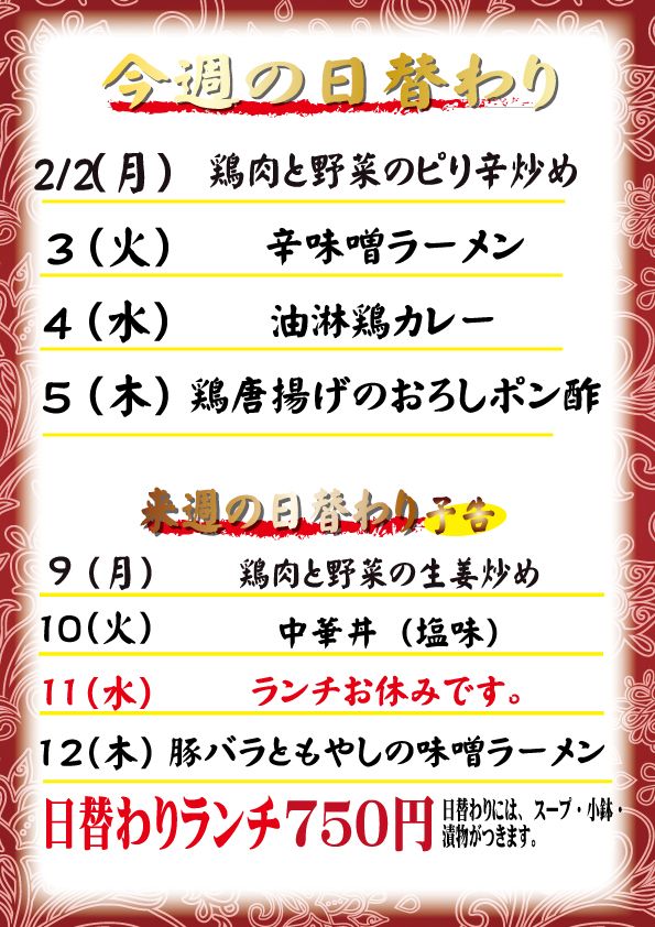 明日からの日替わり定食はこちらです。
