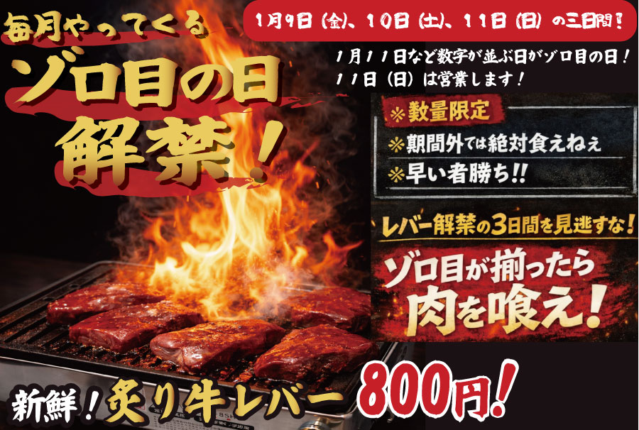 【ついに解禁!】新鮮牛レバーが食べられる!ゾロ目の日!!