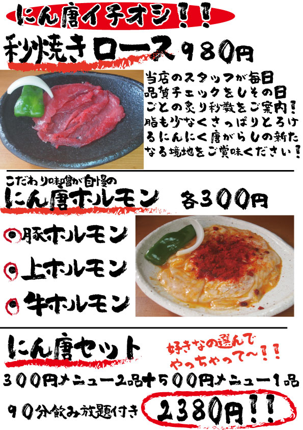 食べやすい量と料金に変更。気軽ににんにく唐がらしを楽しんでいただくためのメニューになっています!