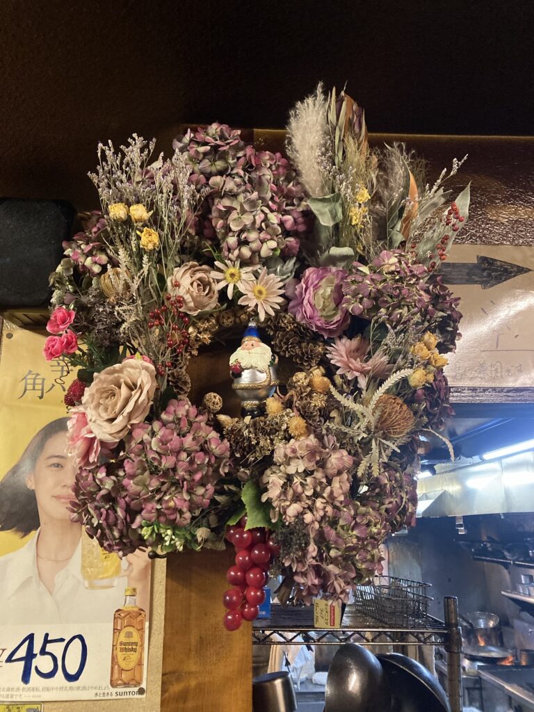 昨日お客さんがクリスマスリースを作って持ってきてくれました!!( ´ ▽ ` )