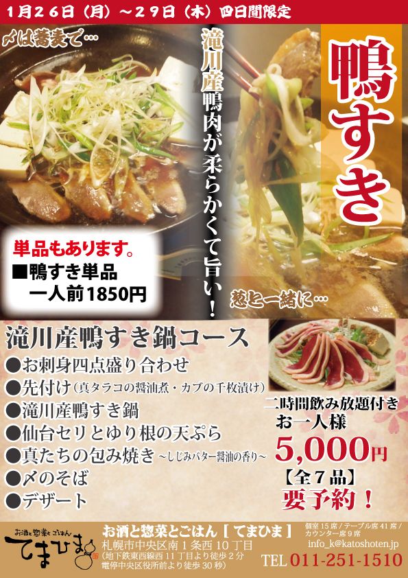 26日〜29日限定で、鴨すきもご用意してますよ〜