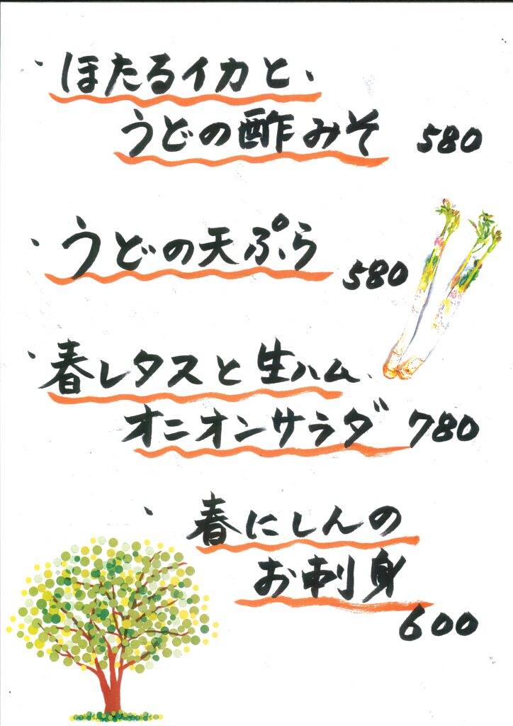 春にはほろ苦い山菜を。